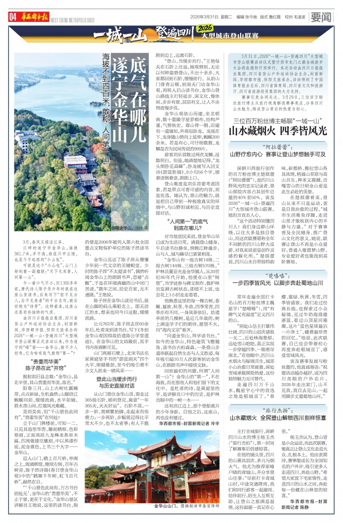 赛事引发全网关注。3月29日,三位百万粉丝旅行博主从旅行视角解读赛事亮点、分享四川山水魅力,畅谈登山背后的热爱与初心。