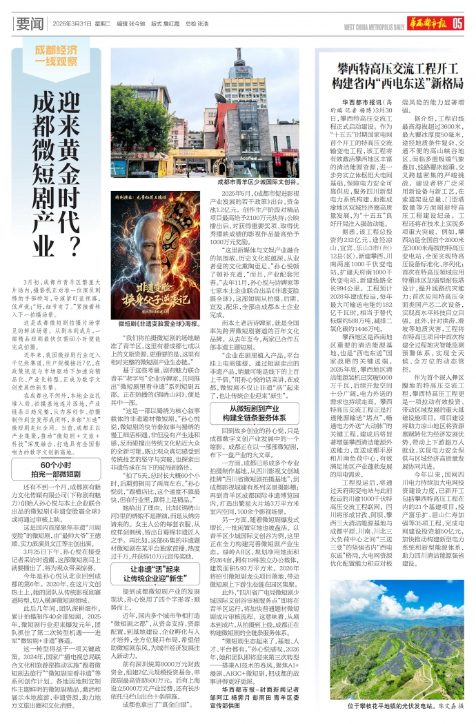 “微短剧生态起来了,基地、人才、平台都有。”孙心悦感叹,2026年,她和团队即将迎来第三次转型——搭乘AI技术的春风,聚焦AI+漫剧、AIGC+微短剧,把成都的故事讲得更好更深。
