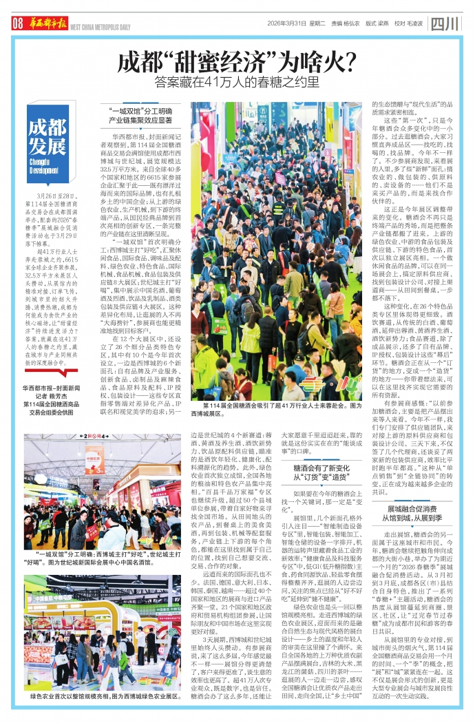 3月26日至28日,第114届全国糖酒商品交易会在成都圆满举办,配套的2026“春糖季”展城融合促消费活动也于3月29日落下帷幕。
