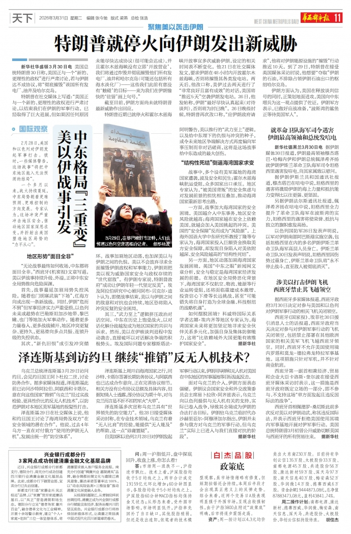 西班牙《国家报》、埃菲社30日援引消息人士的话报道,西班牙政府当天决定对参与对伊朗军事行动的飞机关闭领空,包括禁止部署在其他欧洲国家的相关美军飞机飞越西班牙领空。同时,西班牙不允许美国使用境内罗塔和莫龙-德拉弗龙特拉军事基地。这项措施只针对军机,并不针对商业航班。