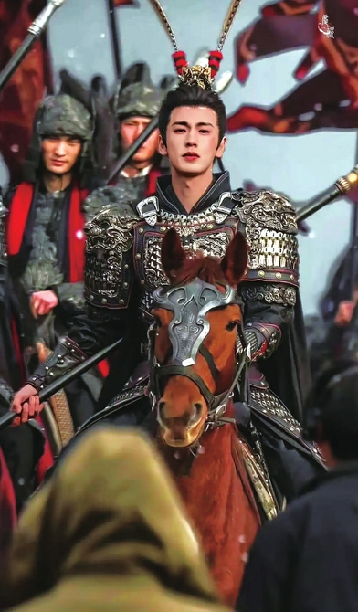 张凌赫饰演的武安侯谢征头戴雉尾翎。《逐玉》剧照