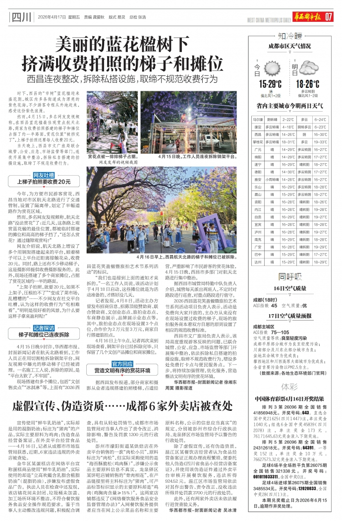 美丽的蓝花楹树下 挤满收费拍照的梯子和摊位
