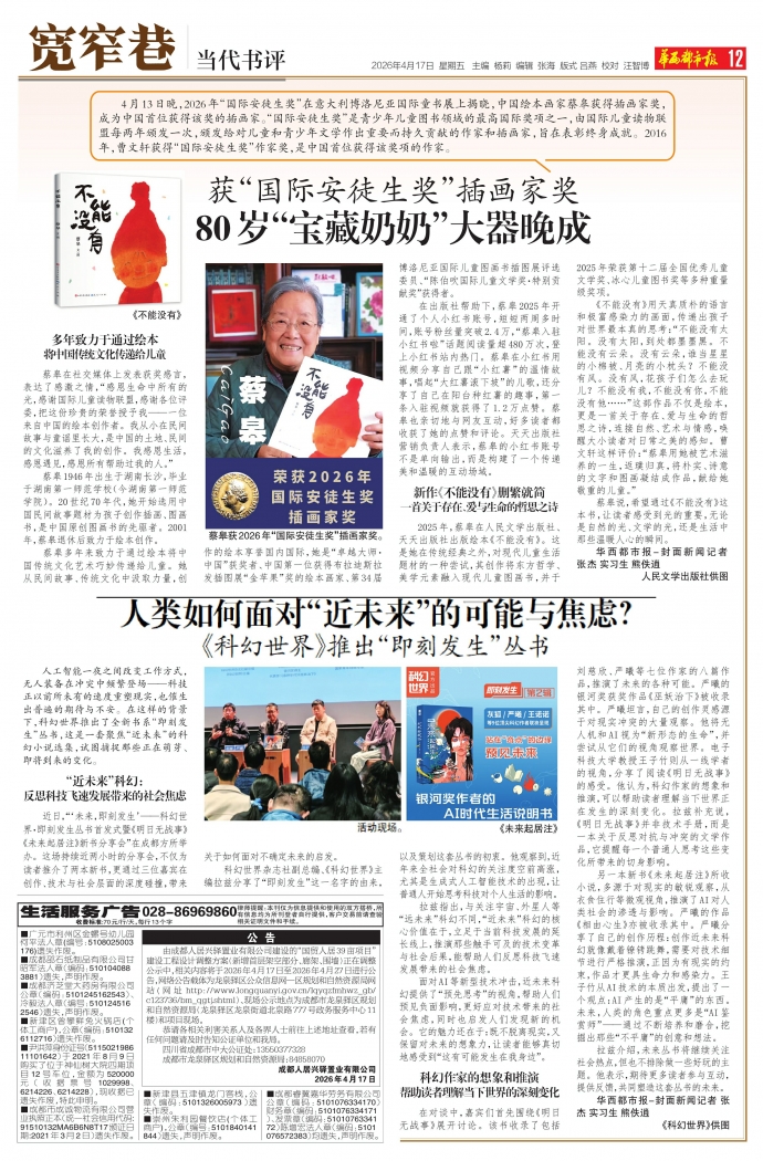 蔡皋获2026年“国际安徒生奖”插画家奖。