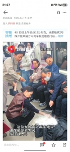 近日,成都地铁上一位女士救助晕倒男子的视频引发关注。4月16日晚,华西都市报、封面新闻记者联系上视频拍摄者郑女士,她表示,除了这位女士施救外,一旁的乘客也在帮忙递纸巾、送糖果、找工作人员……