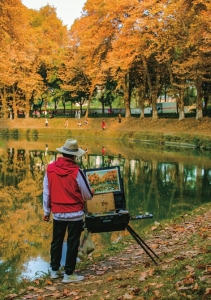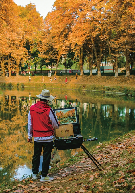 将如画风景收入画中。摄影 陶冶