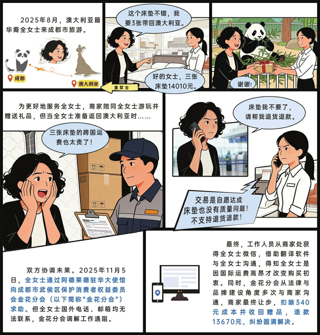 在成都市加快建设“国际消费中心城市”的背景下,跨境消费日益频繁,外籍消费者纷至沓来的身影背后,不仅涌动着商业机遇,更考验着每一笔交易背后的服务温度。本案提醒广大消费者,跨境购买大件商品时,除了关注产品本身价格,还应提前了解运输、安装、售后等配套成本,避免因信息了解不全导致决策失误;同时也提示商家在服务外籍消费者时,应主动提醒跨境购物的后续配套成本,让消费更透明、更安心。