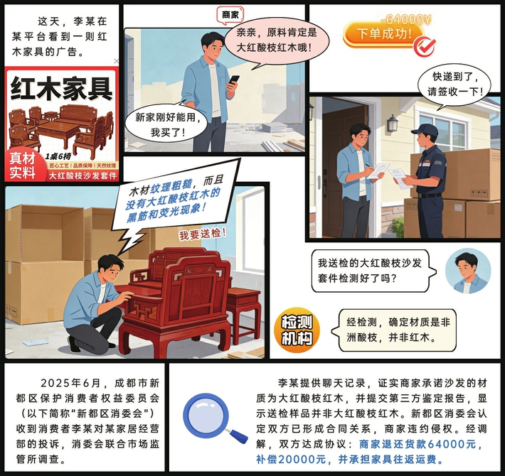 本案也提醒消费者,在购买家具时,关于产品材质、颜色、款式等关键信息,应通过订单或书面合同等文字形式予以固定,若发生纠纷可作为维权的重要依据;收货查验亦不可马虎,对材质存疑时可委托具备资质的第三方检测机构进行鉴定,用科学证据依法维权。