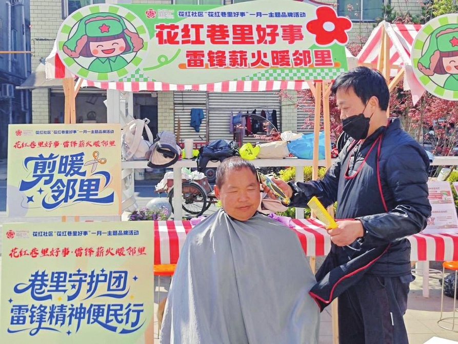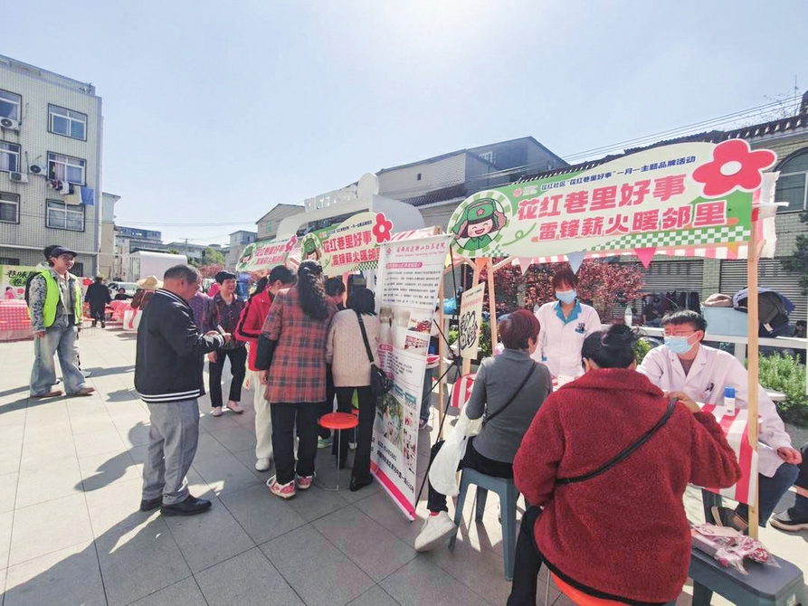 这是花红社区“花红巷里好事”一月一主题品牌活动的现场——每月一场接地气的主题活动,早已成为居民心中的期待。这场以“雷锋薪火暖邻里”为主题的活动,在邻里的问候声、笑声和锅碗瓢盆的碰撞声里铺展。