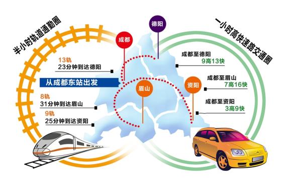 “进城入圈”一年来,眉山签订成眉市域铁路S5线、成都外环铁路共建共管协议,丹蒲快速即将建成,仁简快速加快推进,“5高3轨12快”20条同城大通道加快形成。成眉跨市公交线路增加至4条,日间动车加密至80列。