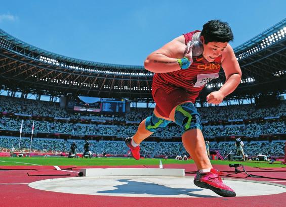 8月1日,在女子铅球决赛中,“四朝元老”巩立姣奋力一掷。 新华社发
