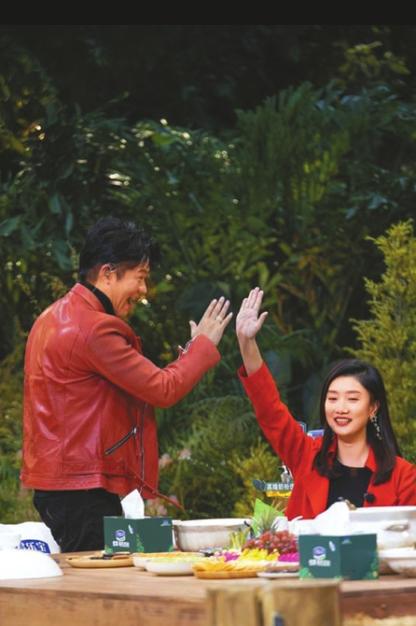 许茹芸的拜年菜是一道富有“年年高升”好兆头的年糕汤,而得到这份祝福的人是蔡国庆,他带来老歌《三百六十五个祝福》,这首歌已有三十年的历史了。蔡国庆向其他人笑称,并不是他总想唱这首《三百六十五个祝福》,是观众朋友们已经离不开这首歌里蕴藏的深切祝福了。凤凰传奇则带来了一首新春色彩浓厚的《发财发福中国年》,将现场气氛烘托得更为热烈,何炅感慨道,“过年不听一首凤凰传奇是不完整的”。一曲唱毕,玲花和曾毅向大家拜年,下台后玲花笑称高分贝的祝福差点把自己的嗓子吼哑了。