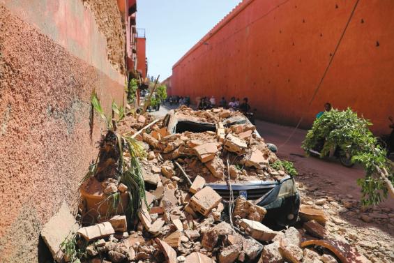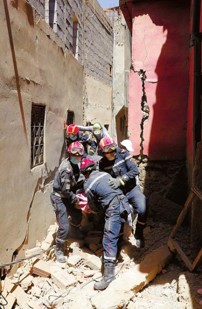 9月9日在摩洛哥南部城市马拉喀什拍摄的震后景象。 新华社发