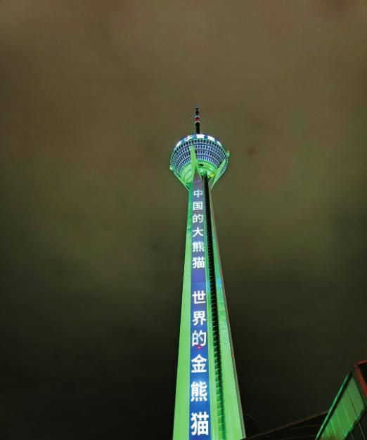 成都339上演“金熊猫”主题灯光秀。 周琴摄