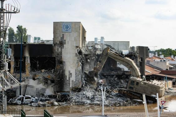 10月8日,在以色列南部城市斯代罗特,以军将哈马斯武装人员曾躲藏的警察局办公楼拆除。 新华社发