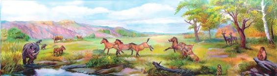 远古动物种群复原图:真马动物群。