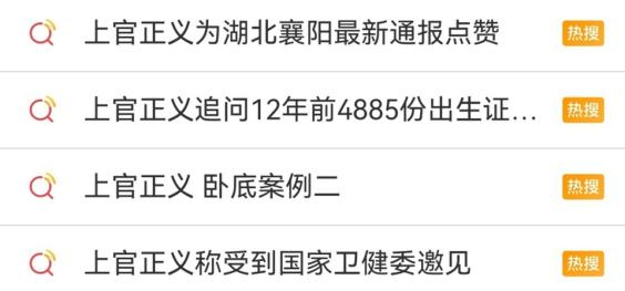 网络平台上有关上官正义的热搜。受访者供图