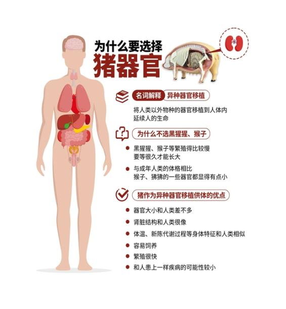 将猪的器官移植给人,被称为“异种器官移植”,也就是将人类以外物种的器官移植到人体内,延续人的生命。