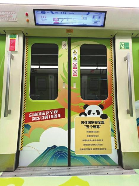“总体国家安全观是什么时间首次提出的?”“国家安全到底有多重要?”“公民和组织在维护国家安全中的义务有哪些?”……列车内部,簇簇银杏相拥摇曳,朵朵芙蓉尽情绽放,大熊猫“安安”尽职尽责地带领乘客学习总体国家安全观知识,呼吁大家积极履行维护国家安全义务,推动形成浓厚的国家安全宣传氛围。