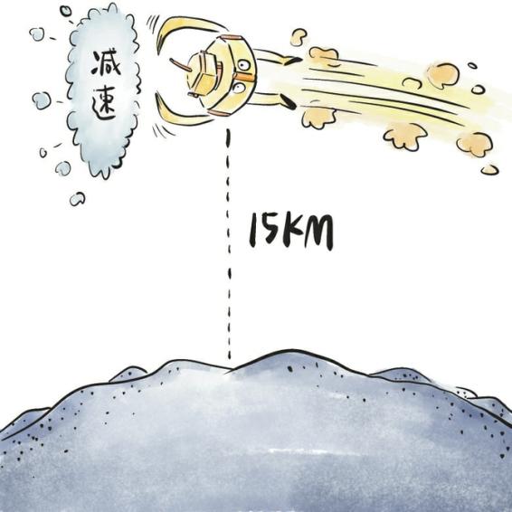 主减速段:在距离月面约15公里高度时,开始进入主减速段,任务就是“减速制动”,整个主减速段“着上组合体”基本呈现与月面平行的姿态飞行。