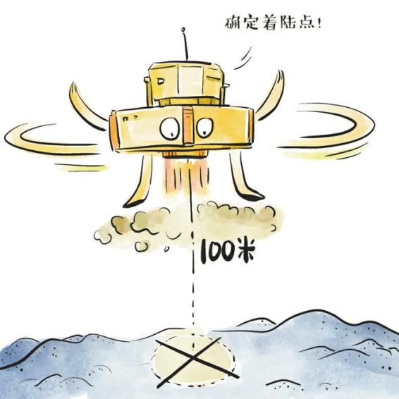 悬停段:降落到110米到90米高度区间,“激光三维成像敏感器”在不到3秒钟时间内快速完成对着陆区域的高精度三维成像,选定着陆点。