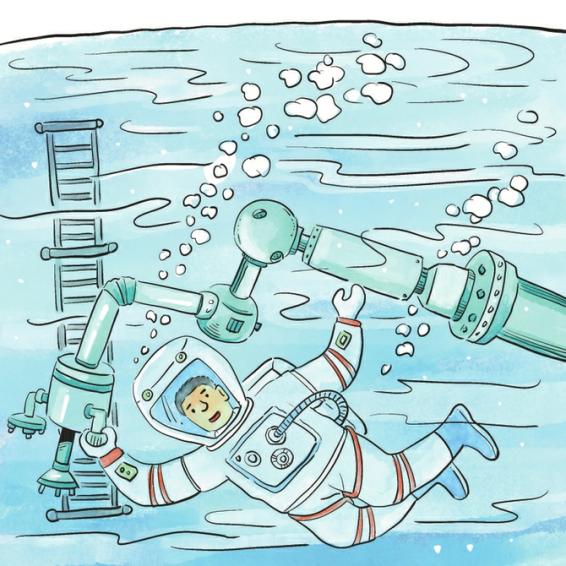 模拟失重水槽出舱活动训练最广为人知,训练时通过浮力配平,航天员身着水下训练服,用双手控制身体姿态,完成舱外转移、上下机械臂设备组装等操作。水下训练需要体能力量,更需要技巧。