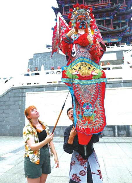 外国留学生体验川北大木偶。黎涛摄
