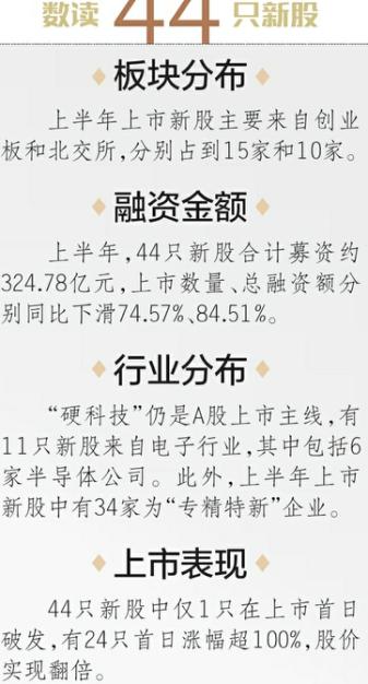 或因不符合板块定位、业绩未达上市新规要求等各种原因,不少企业选择终止IPO,但仍有44家公司突出重围,在上半年成功登陆A股市场。这些新股有何特点?记者进行了梳理。