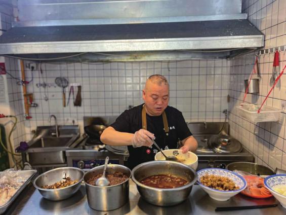 30多平米的小店,几张木制桌子,身兼掌勺和服务员的老板……在距离成都市第五人民医院约400米的云溪路口,一家不起眼的米线店生意红火。