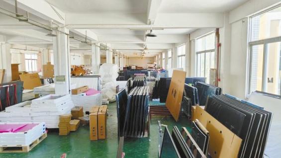 专案组查处违法组装电视机的车间时发现,库房内堆积着大量电视机外壳、主板和白板显示屏,还有很多品牌透明贴纸,以及部分准备发出和退回的假冒品牌电视机。
