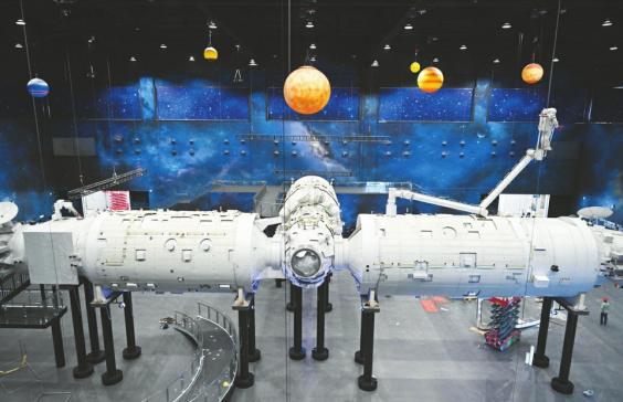 这是9月25日拍摄的珠海太空中心新馆的中国空间站组合体模型。新华社发