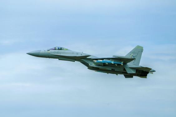 11月9日,歼-15T舰载机进行适应性训练。杨峰摄