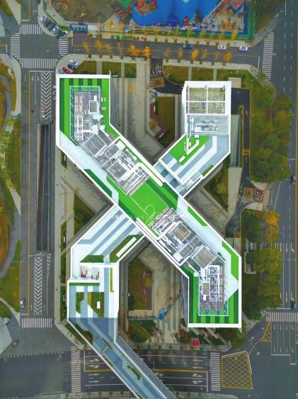 俯瞰视角下,底色是建筑周围、顶部的一片绿,这也正是贾科从飞云之上发现的成都的浪漫:“有一种公园城市在大自然中生长的生命力,或许这就是人、城市、自然和谐共生的具象化吧。”