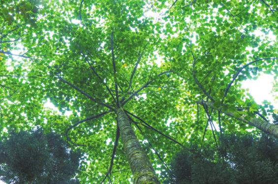 邛崃市天台山镇,枝繁叶茂如伞盖的鹅掌楸。
