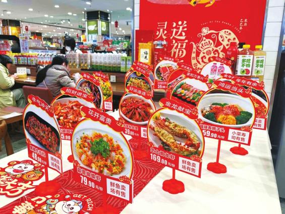 与此同时,方便快捷的年夜饭预制菜也越发走俏,各种餐企、商超、生鲜电商等都聚焦家宴场景,纷纷推出特色菜品和礼盒。日前,华西都市报、封面新闻记者走访了成都多家线下商超,看到蒸炸煎煮各色预制菜品一应俱全。线上销售也十分火热,某电商平台293元8个菜的年夜饭套餐已售超5000单。
