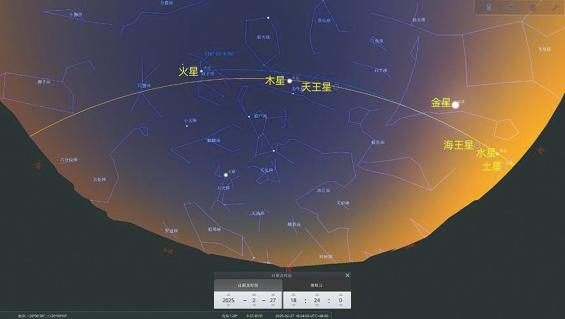 软件模拟的2025年2月27日“七星连珠”。施韡供图