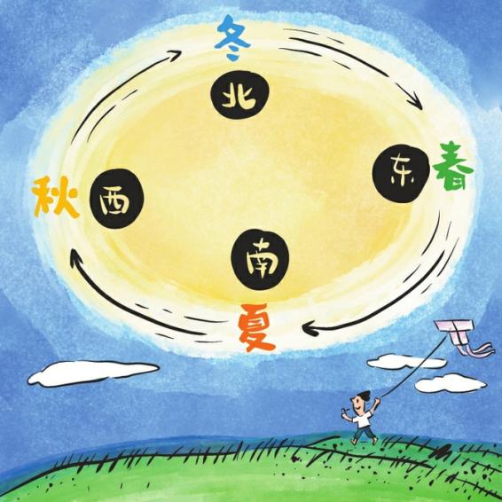 古人又将春、夏、秋、冬与东、南、西、北相配,东方是太阳升起的地方,“一日之始”;相应地,“春”与“东”相配后,生机勃勃的春季,自然就成了“一年之始”和“四时之首”。