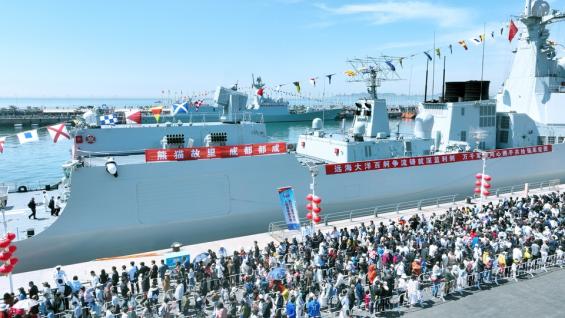 现役舰艇开放是备受民众关注的活动,今年海军开放舰艇超过30艘,型号、数量均超过往年。结合“战舰回家乡”活动,海南舰、秦皇岛舰、潍坊舰、五指山舰、三亚舰等现役舰船靠泊命名省份或城市,南京舰、六安舰靠泊人民海军诞生地江苏泰州,郑和舰靠泊郑和下西洋起锚地江苏太仓,受到当地党政机关和群众热烈欢迎。在山东青岛,成都舰、唐山舰、临沂舰、日照舰、可可西里湖舰等5艘舰船悬挂满旗靠泊开放,几只憨态可掬的大熊猫模型带着“第二故乡”的问候,趴在成都舰舰舷,吸引参观群众打卡拍照。青岛也成为开放战舰次数最多、单次开放战舰数量最多的城市。在黄浦江畔,沂蒙山舰、西安舰靠泊上海港国际客运中心码头,与地标建筑东方明珠广播电视塔同框出镜。