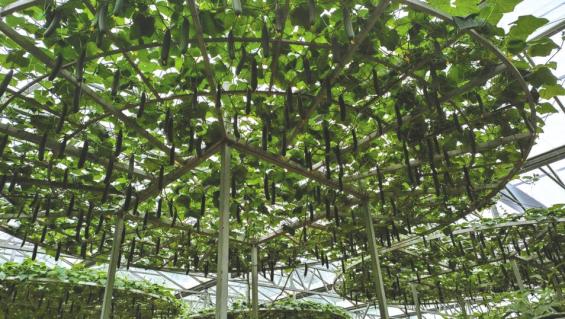 马尊娟所在的团队,进行番茄树技术相关研究已有20余年。她表示,随着技术的日渐成熟,番茄树的冠幅覆盖面积、结果量都在逐年增加。而在番茄树培育的技术基础上,团队还实现了黄瓜树、西瓜树、红薯树、龙凤瓜树等蔬果作物的树式栽培,并在今年的菜博会上进行了展示,“每年我们都会尝试将一些新的蔬果培育成‘树’。”马尊娟说。