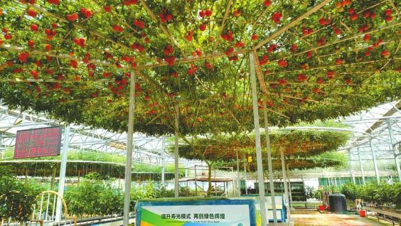 番茄作为草本科植物,生长的极限在哪?近日,在山东举办的第二十六届中国(寿光)国际蔬菜科技博览会(以下简称“菜博会”)上,一棵高大的“番茄树”吸引了观众的目光。现场,只见番茄树粗壮的树干从水培箱中伸出,连接到上方的支撑架上,枝条蔓延,形成了茂密的树冠,其间还挂着许多成熟的红色番茄果实。