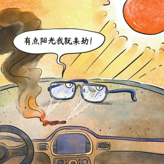 5.老花镜属于凸透镜,容易将光线聚在一起,如果长时间聚焦光线,导致焦点温度过高,可能会引燃车内物品,造成车辆自燃。