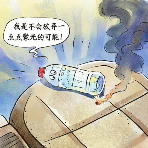 7.矿泉水瓶边缘容易汇聚光线,点燃车内的物品。