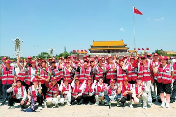 2025年8月,三家村的老人们在天安门广场合影。