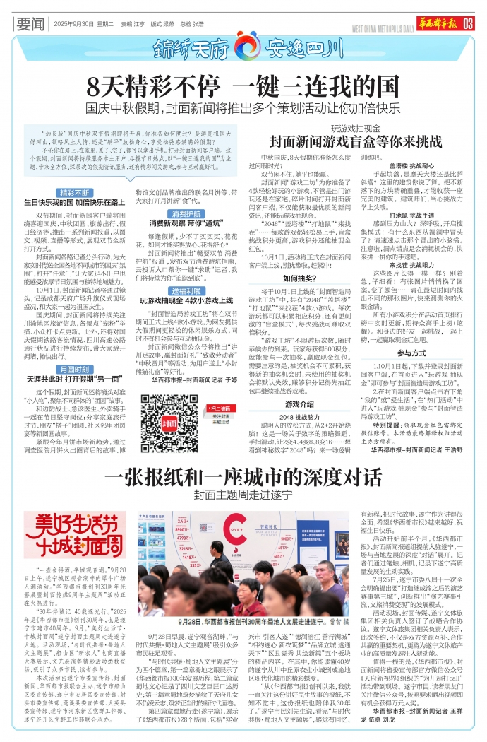 国庆中秋假期,封面新闻将推出多个策划活动让你加倍快乐
