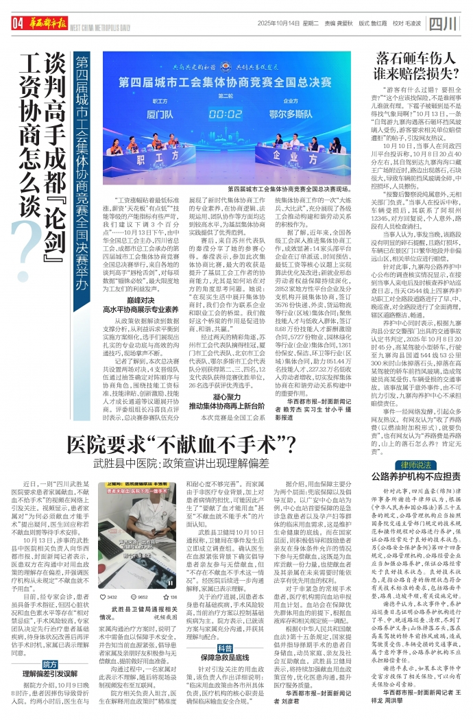 “工资涨幅贴着最低标准涨,薪资‘天花板’有点低”“技能等级的产能指标有些严苛,我们建议下调 3 个百分点”……10月13日下午,由中华全国总工会主办,四川省总工会、成都市总工会承办的第四届城市工会集体协商竞赛全国总决赛举行,来自各地的谈判高手“唇枪舌剑”,对每项数据“锱铢必较”,最大限度地为工友们的利益发声。