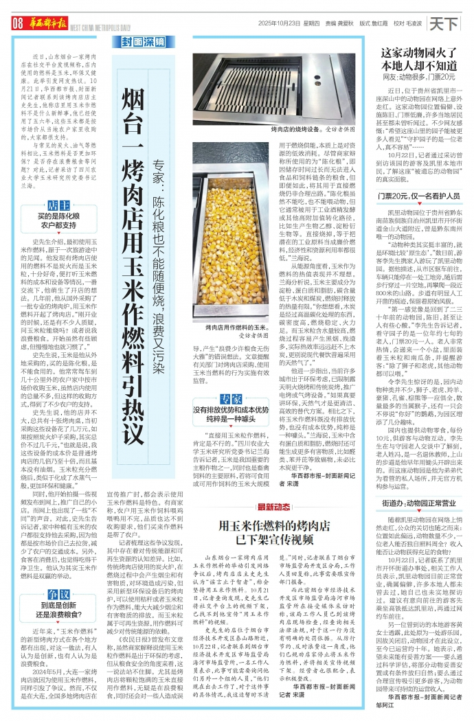 近日,山东烟台一家烤肉店在社交平台发视频称,店内使用的燃料是玉米,环保又健康。此举引发网友热议。10月21日,华西都市报、封面新闻记者联系到该烤肉店店主史先生,他称店里用玉米作燃料不是什么新鲜事,他已经使用了五六年,这些玉米都是按市场价从当地农户家里收购的,大家都很支持。
