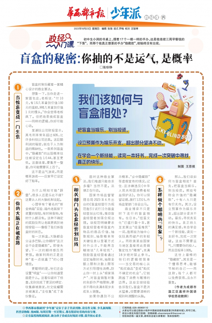 商业博弈不只是时下流行的盲盒独有。在日本,“扭蛋文化”已盛行数十年,甚至发展出“扭蛋难民”一词,指那些为抽中心仪玩具而破产的年轻人。而欧美某些国家与地区直接将此类销售定性为“赌博”,未满18岁绝对禁止参与。他们的逻辑很简单——当交易的核心从“购买商品”变成“购买不确定的机会”,它就跨越了消费与赌博的边界。这些全球经验告诉我们,盲盒不是洪水猛兽,但需要清晰的规则和清醒的头脑。