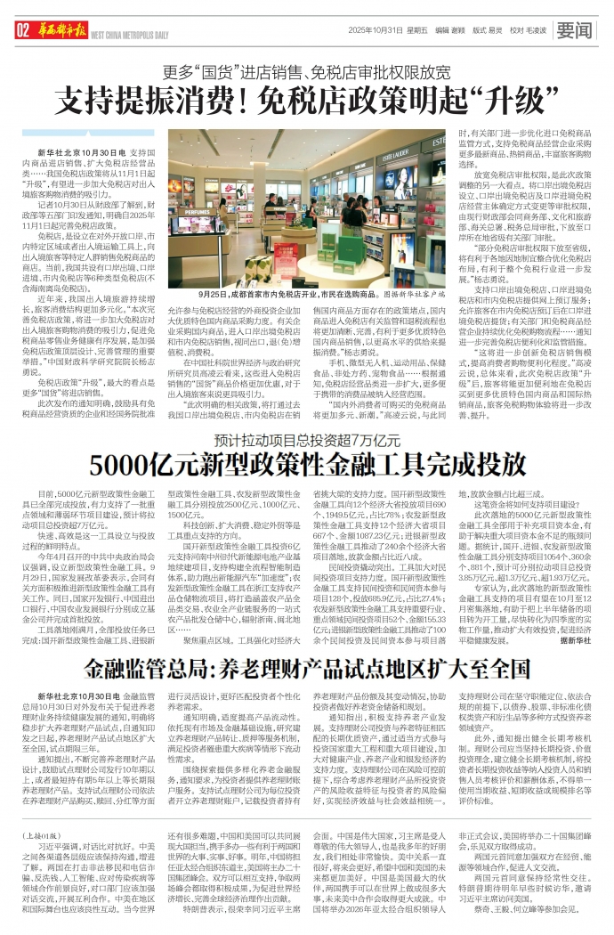 记者10月30日从财政部了解到,财政部等五部门印发通知,明确自2025年11月1日起完善免税店政策。