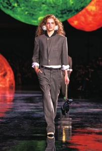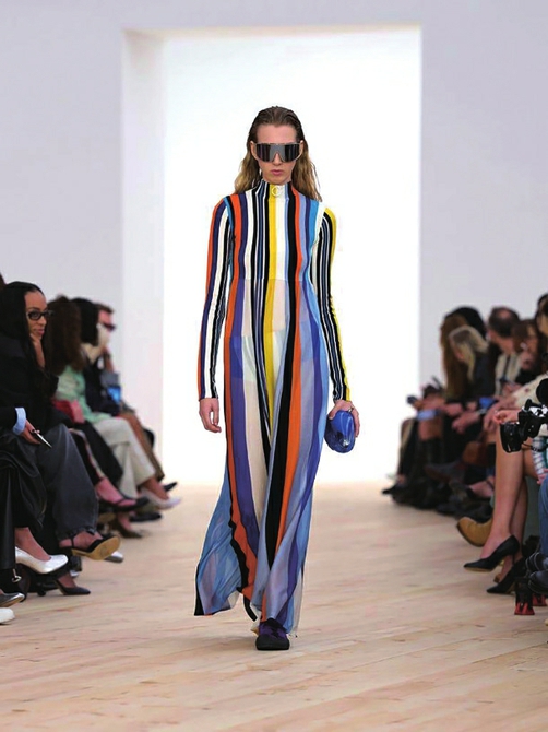Loewe在创意总监Jack McCollough和Lazarro Hernandez的指导下,推出了他们的首个系列。首秀大胆地将艺术、运动与全新的色彩能量融为一体,赢得了全场观众起立鼓掌。时装秀的场景叙事已经成为整个系列不可分割的一部分,一幅黄色面板配红色曲线的Ellsworth Kelly画作被放置在入口处,作为“美学前奏”,预示着即将赋予该系列的活力。