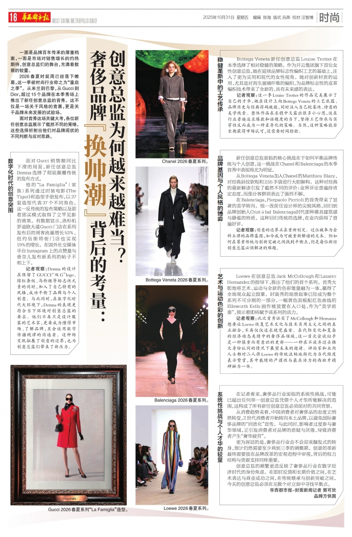 记者观察:创意的边界正在重新划定。过往被奉为金科玉律的品牌基因,如今成为可被重新解读的文本。但如何在尊重传统与创新突破之间找到平衡点,仍是每位新任创意总监必须解决的难题。