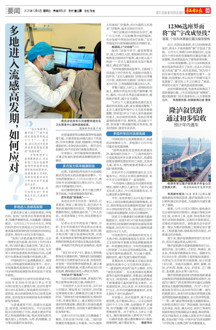 华西都市报讯(记者曹菲)记者从蜀道铁路投资集团获悉,隆泸叙铁路12月3日顺利通过初步验收,为线路年内通车奠定了基础。